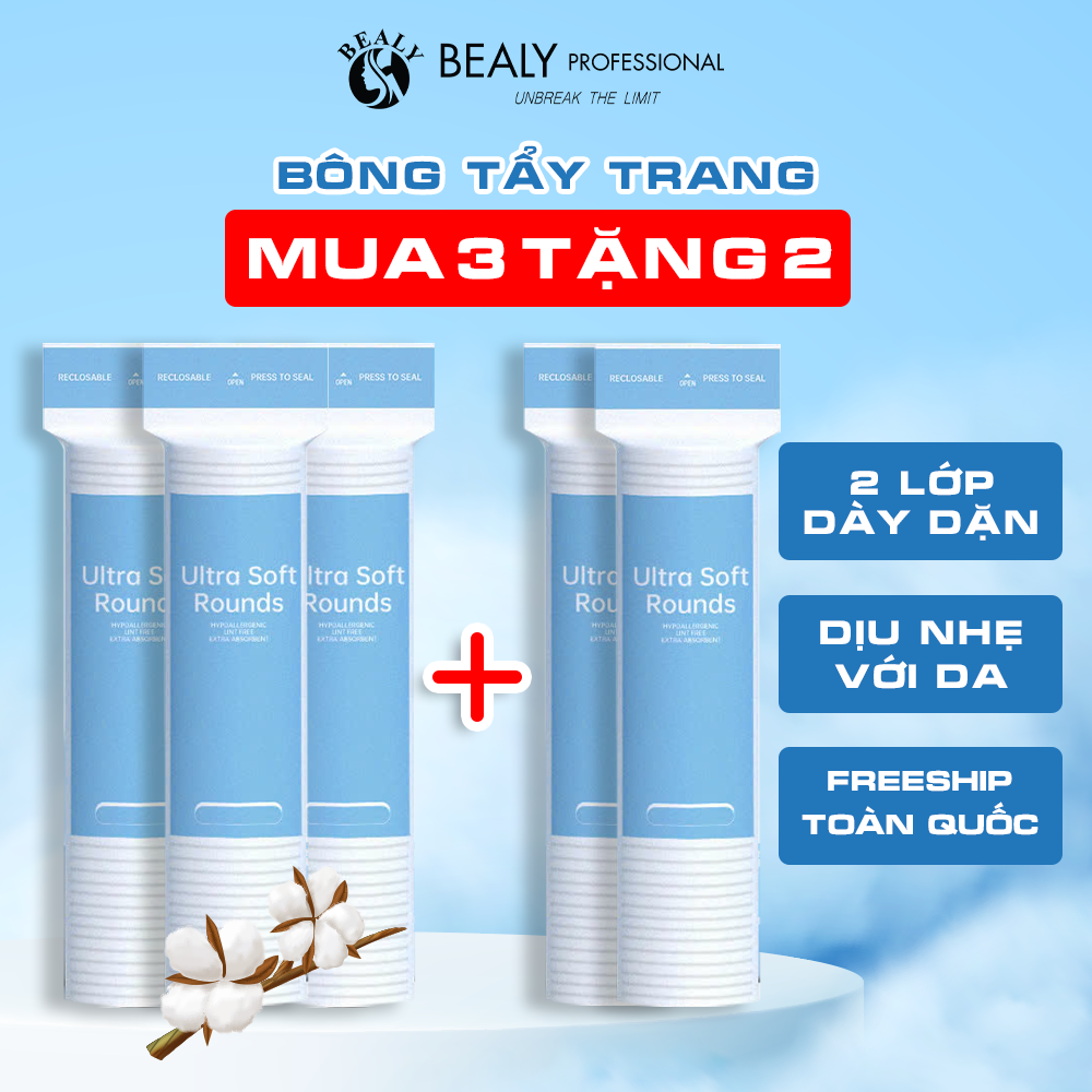| Siêu mềm, mịn | Bông được làm từ sợi siêu mịn, không gây xước da, giúp loại bỏ lớp trang điểm và bụi bẩn một cách nhẹ nhàng. |