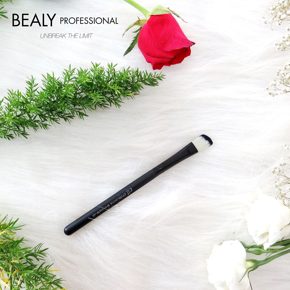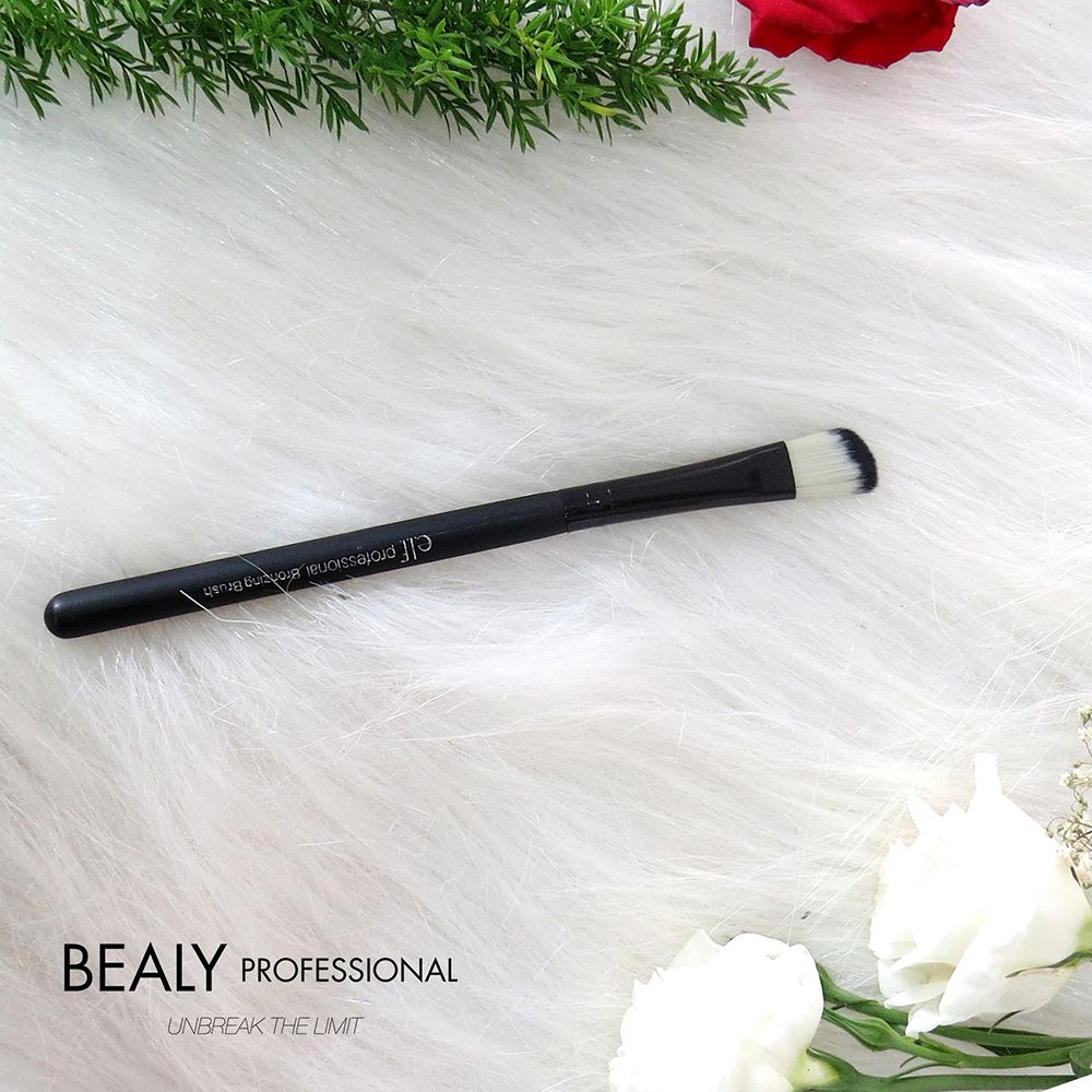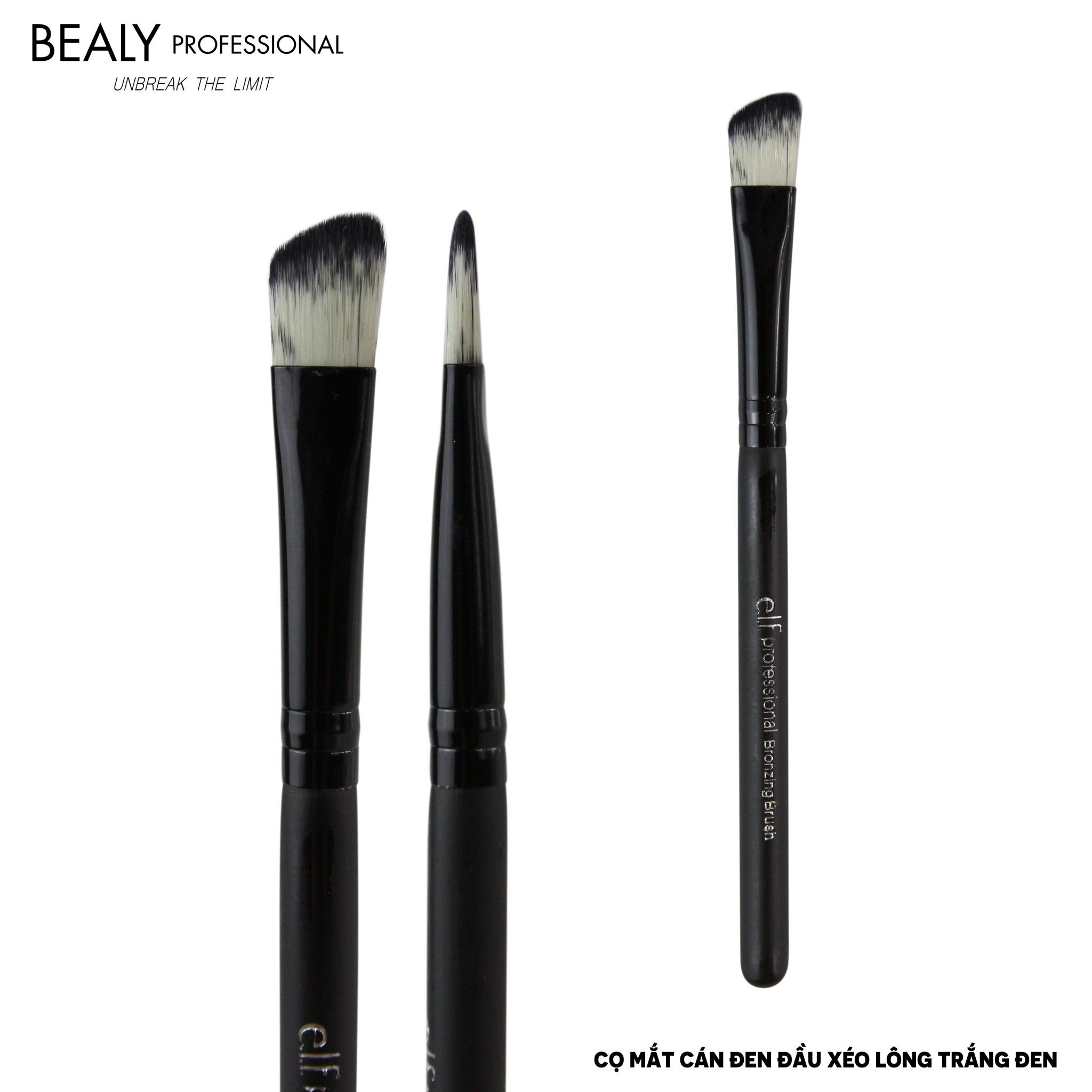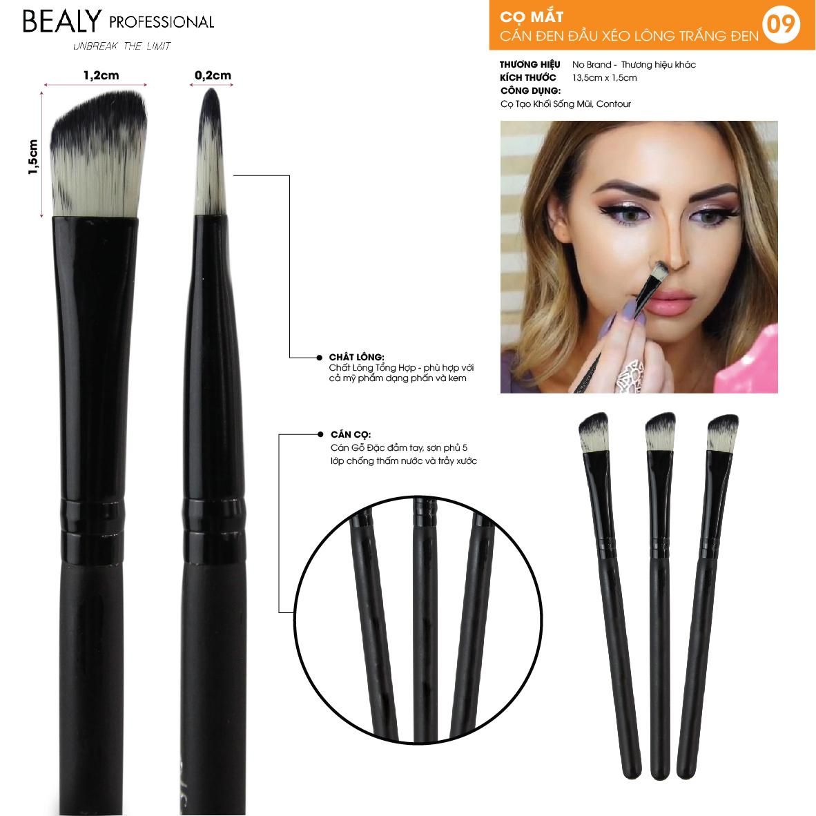 Cọ mắt cán đen đầu xéo lông trắng đen có đầu cọ góc cạnh, vạt xéo lý tưởng cho việc phủ bóng lên mí mắt một cách chính xác. Các chuyên gia trang điểm mắt theo hình dạng xác định, với vạt xéo khi thoa phấn sẽ để lại một màu đậm nhạt dần. Cọ có đường viền vạt xéo là hoàn hảo cho kỹ thuật từ đường viền mi dưới đến viền ngoài theo hình chữ V. Đây là một công cụ chính xác cho phép bạn tạo ra các hiệu ứng ấn tượng và chuyển màu nhẹ nhàng.
